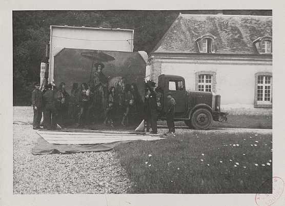 Dès septembre 1939, les musées français cherchent à mettre les œuvres d’art à l’abri. C’est Jacques Jaujard, directeur des musées nationaux et de l’École du Louvre qui est l’organisateur de l’exode artistique et qui supervise, aidé par le personnel du Louvre et des bénévoles de la Samaritaine, l’emballage et l’évacuation de 1 862 caisses.