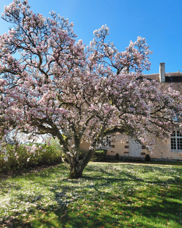 En cette matinée de presque printemps, ses grandes fleurs blanches et rosées annoncent le réveil de la nature dans le Perche. Pendant quelques jours seulement, il transforme le jardin en nuage de pétales et rappelle que la belle saison arrive doucement.