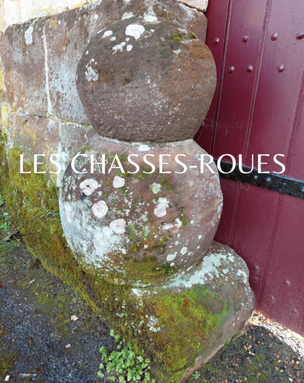 Au Logis de l’Évêque, à La Perrière, ces chasses-roues en pierre de roussard, omniprésente dans le village, racontent encore cette histoire : leur surface creusée par les frottements répétés, témoigne de leur rôle essentiel dans la protection des porches.