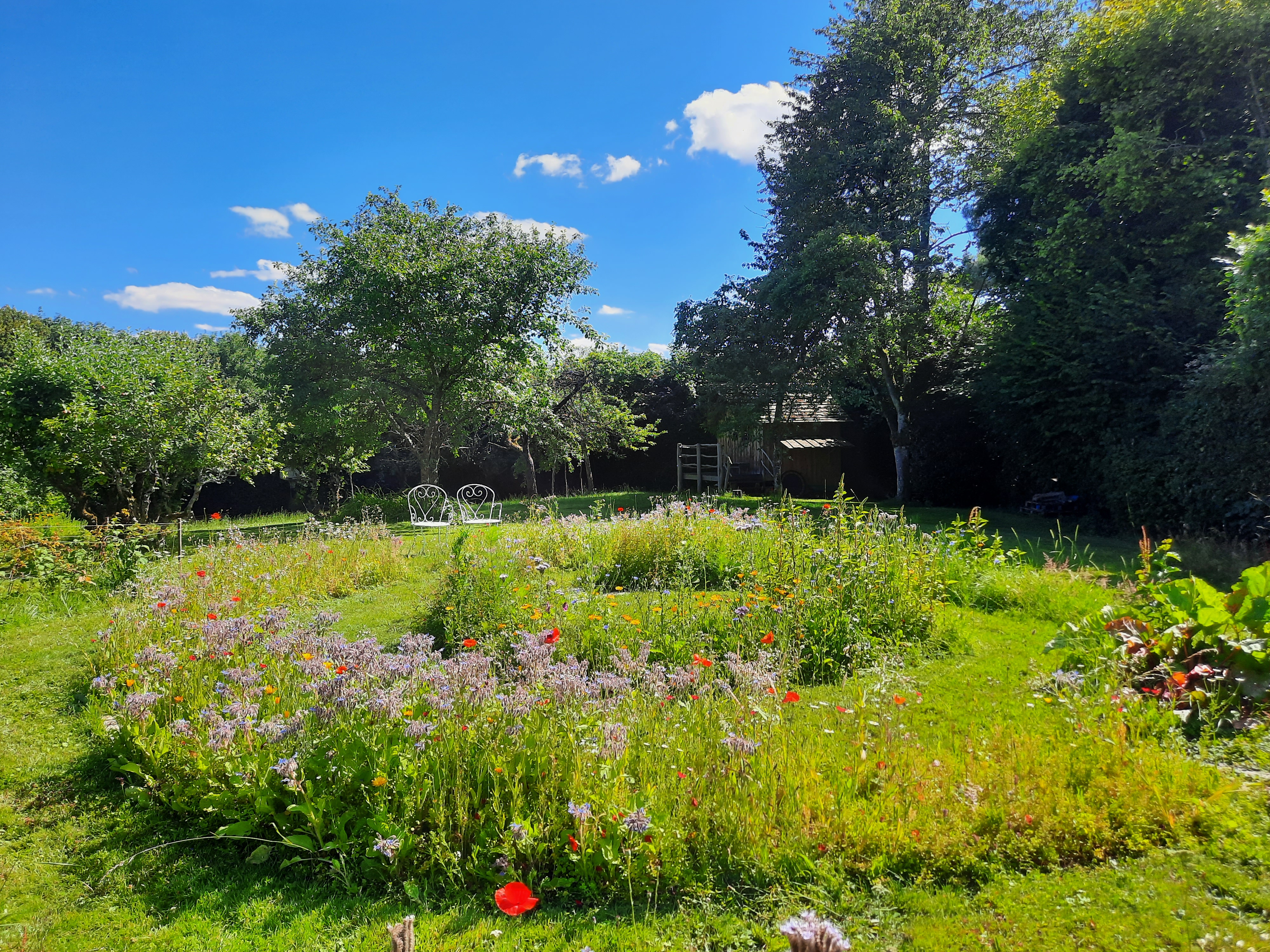 Le verger attenant déploie une trentaine d’arbres fruitiers (pommiers, poiriers, figuiers, pêcher, cerisiers, noisetiers, pruniers…) dont certaines espèces sont très vieilles. Tous les ans, nous ramassons des dizaines de kilos de fruits que nous aimons partager ! A l’automne, nous faisons notre jus de pomme.